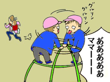 ジャングルジムとか上る時は、私にすぐそこで立っとけと命じて、逃げないように見張りながら遊んでます。