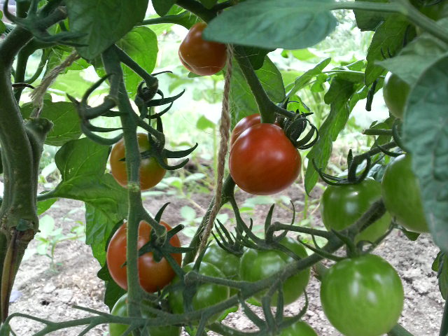 ピークにはプチトマトでトマトソースを作るという贅沢(贅沢か?)もできそうなくらい、今はまだ青いけど大きな実がいっぱい。