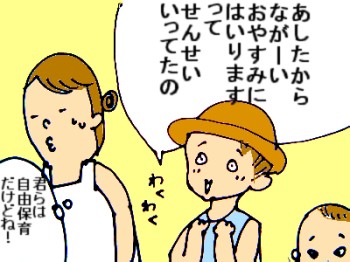保育園は幼稚園と違って、夏休みが一週間くらいしかありません。