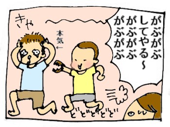 私が頭をぴしゃっと叩けば、2倍返しでやられたらやりかえすが鉄則のあたり