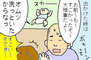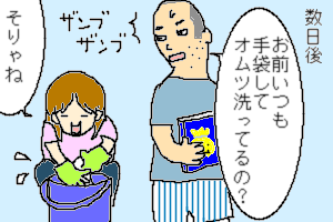 ともかく、素手で汚れた(しかも大)オムツを洗い上げた旦那に、2児の父親としての自覚(覚悟?)をひしひし感じました。