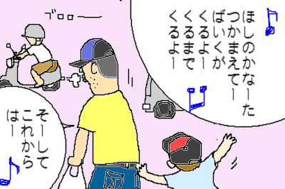 またまた・・・ネタでしょ。とお思いのみなさま。私がここで描く4コマはたいがい、事実に基づいたフィクションです。まぁ、「死んでるかと思った」とは言わないまでも、家族全員いっせいに目を開けて寝られたら、さすがに死んでないと分かっててもビビりますよ(次男はまだ目を開けて寝ませんが)。