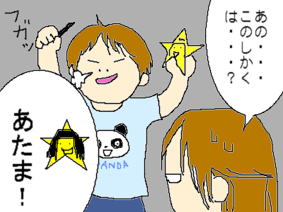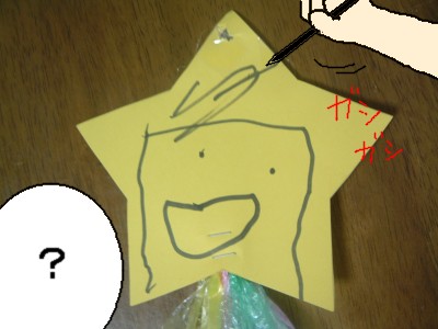 おほしさまに髪の毛を描いちゃう時点で、あの黄色い星型と空の星とは完全にリンクしてないってことがわかります。っていうか、それを言うなら、おほしさまに顔はないけどね!