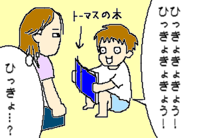 ちなみに「ひっきょ…」は2歳半くらいから言い出して、何のことかと思ってましたが、何度確認してもトップハムハット卿に間違いありません。たまに「ひっきょきょさん」とさん付け。もともと「さん」はないでしょ。っていうか、「ひ」はどこから来るのか教えてよ。