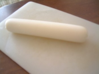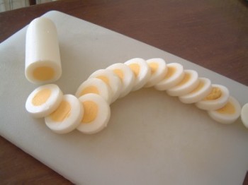 ほんとの卵を輪切りにしたら、端っこが白身だけになって、不経済だもの!