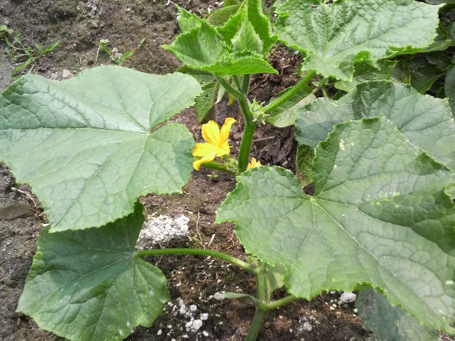 花の感じがヘチマ系っぽいよね。たぶんズッキーニだと思う。
