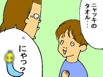 NHKグッズの店は車で行ける範囲にあるにはあるけど、品揃えは少なく、ニャッキグッズがあるかどうか、しかもタオルが置いてあるかどうか、分からないらしい。