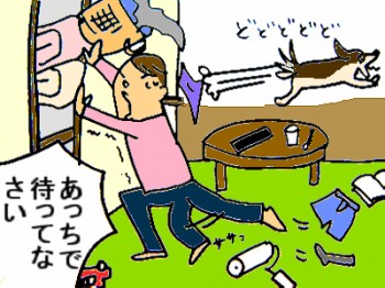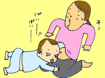 ふとんばさみをこんなとこに置いたやつは誰だコラー。お前か!ちっちゃいの。